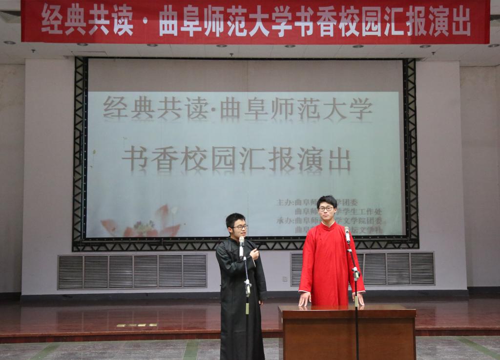 文学院党委书记苏占兵在致辞中指出,近年来,文学院紧跟传统文化弘扬潮流,立足学科专业优势,积极开展了传承经典系列特色活动,打造具有全校影响力的可复制、可推广的传统文化特色平台,争做全校创建“书香校园”工作的排头兵,希望青年学子自觉承担传承中华文化的光荣使命,文化传承萦系于心。文学院党委副书记王作茂宣读了文学院经典共读·书香校园实施方案,从非遗进校园、传统吟诵、诗歌、阅读、话剧、科创成果等七个方面解读文学院在传承经典系列活动中取得的成果,并提出打造高层次阅读活动的目标。