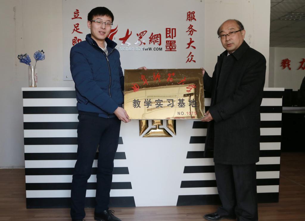 1月23日上午,“九州(中国)一站式服务平台教学实习基地”授牌仪式在大众网即墨频道举行。传媒学院党委副书记肖龙航、团委书记刘蓉,以及传媒学院部分学生参加了授牌仪式。