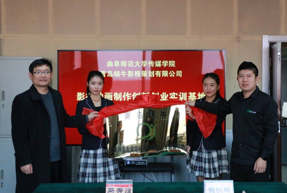 12月1日,青岛蜗牛影视公司——九州(中国)一站式服务平台影视动画制作人才培养基地揭牌仪式在我校顺利举行,传媒学院院长马秀峰、副院长王焕景,教务处副处长张全景,青岛蜗牛影视策划有限公司CEO 崔明鹏、经理崔叶涛以及招生就业处、传媒学院相关师生出席揭牌仪式。