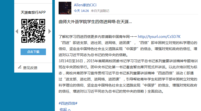 在这短短三十天的宣讲过程中,队员们在网络平台上与广大青年在讨论、参与中学习、消化“四进四信”精神,为逐渐成为具有资格社会主义核心价值观的青年代言人而努力奋斗着。