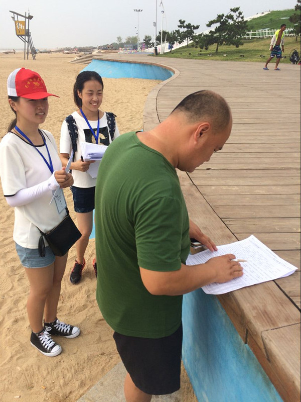 7月18日,“渔我同行”实践队赴日照市太公岛风景区开展社会试研究调查活动。队员们通过访谈和问卷调查的形式对太公岛风景区的游客以及当地渔民进行了走访调查,并记录下当地渔民所提出的有关渔家乐中存在的问题及游客们给予的改善渔家乐这一旅游项目的意见,以继续调整调查问卷中的问题,保证后期实践顺利进行。