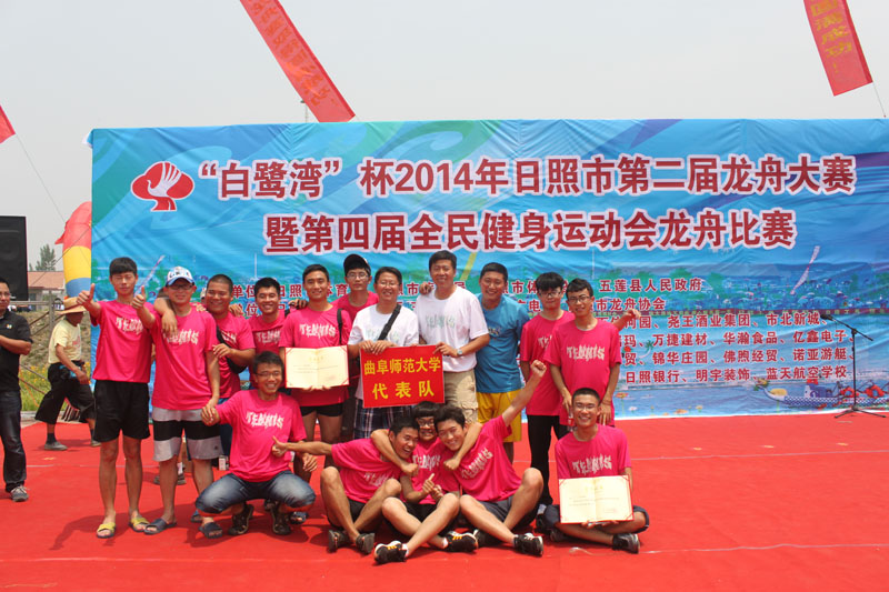 为弘扬传统文化,共度端午佳节,531日,由日照市体育局主办的2014白鹭杯日照市第二届龙舟大赛在美丽的市北经济开发区白潮河岸边举行。我校代表队团结一心,奋勇争先,一路劈波斩浪,最终取得男子组500米第三名,男子组200米第四名的佳绩。
