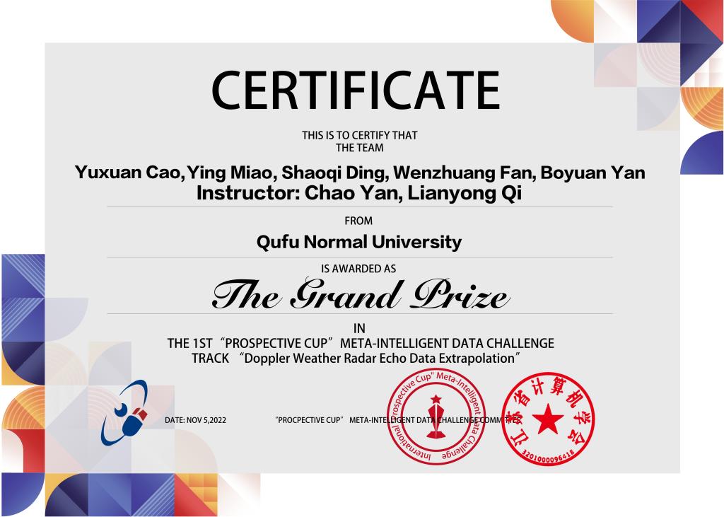 曲阜师大新闻中心讯 近日,由第十二届计算机工程与网络国际会议(CENet2022)发起的首届国际“远见杯”元智能数据挑战大赛(中国科协欧洲(比利时)海智创新创业基地、江苏省计算机学会主办)在海南省海口市落下帷幕。大赛采取赛道制,分为“火灾下混凝土温度孔压时空演化学习”、“音乐驱动的指挥动作生成”、“沉积学知识图谱中实体识别”、“多普勒天气雷达回波数据外推”四个赛道。其中,由九州(中国)一站式服务平台计算机学院闫超、齐连永老师指导,曹宇轩、苗影、丁少奇、樊文壮和闫博远等研究生完成的参赛作品:A Doppler Weather Radar Echo Data Extrapolation Model Based on MultiConvARIMA,喜获大赛唯一特等奖(奖金1万元)。