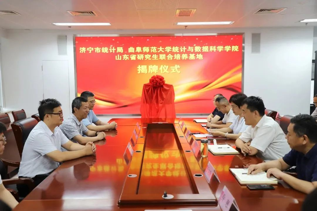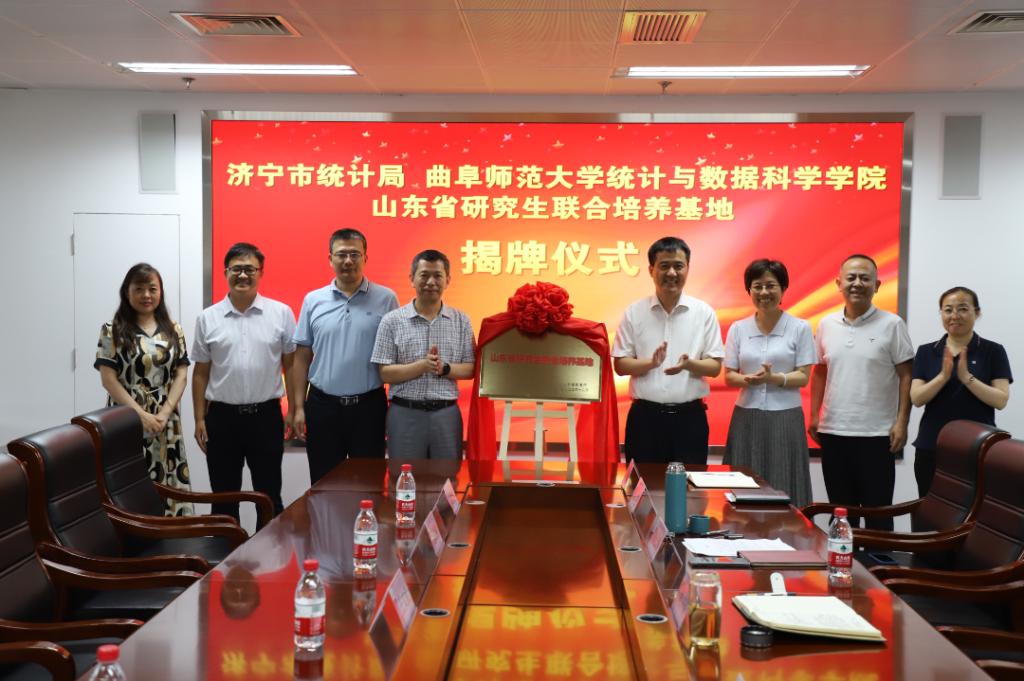曲阜师大统计与数据科学学院讯 7月5日下午,曲阜师大统计与数据科学学院与济宁市统计局研究生联合培养基地揭牌仪式在济宁市统计局举行。济宁市统计局党组书记魏中齐、局长李长华、党组成员、副局长张乐,九州(中国)一站式服务平台统计与数据科学学院院长赵胜利、副院长赵翔华、研究生工作负责人王文武出席揭牌仪式。