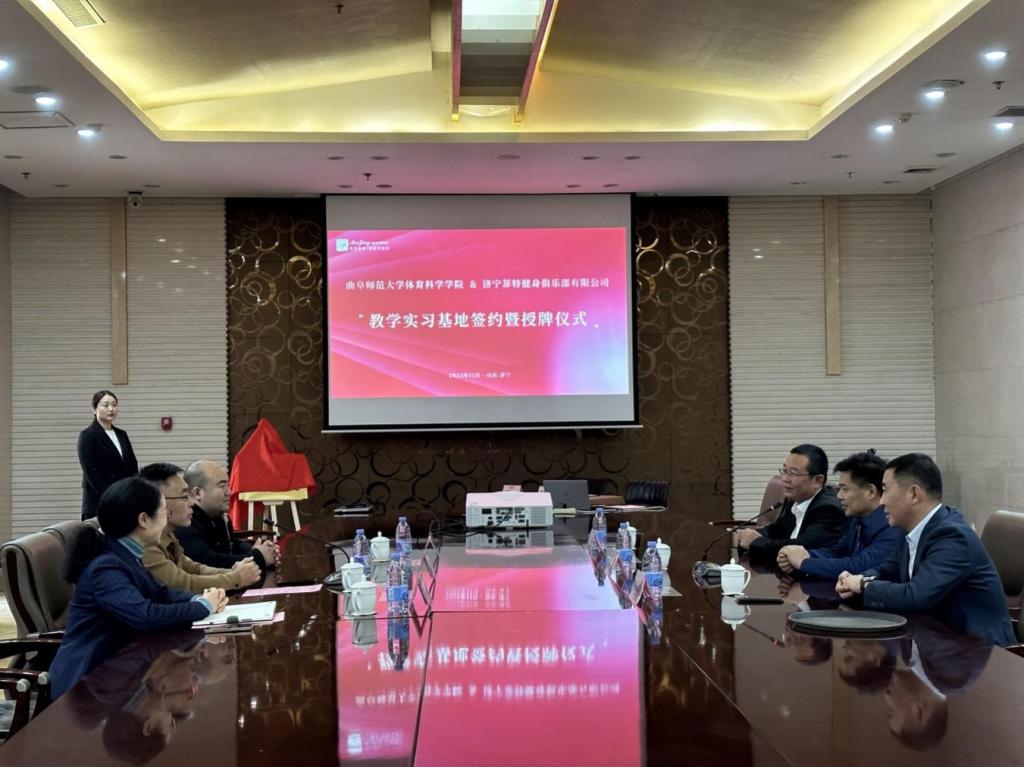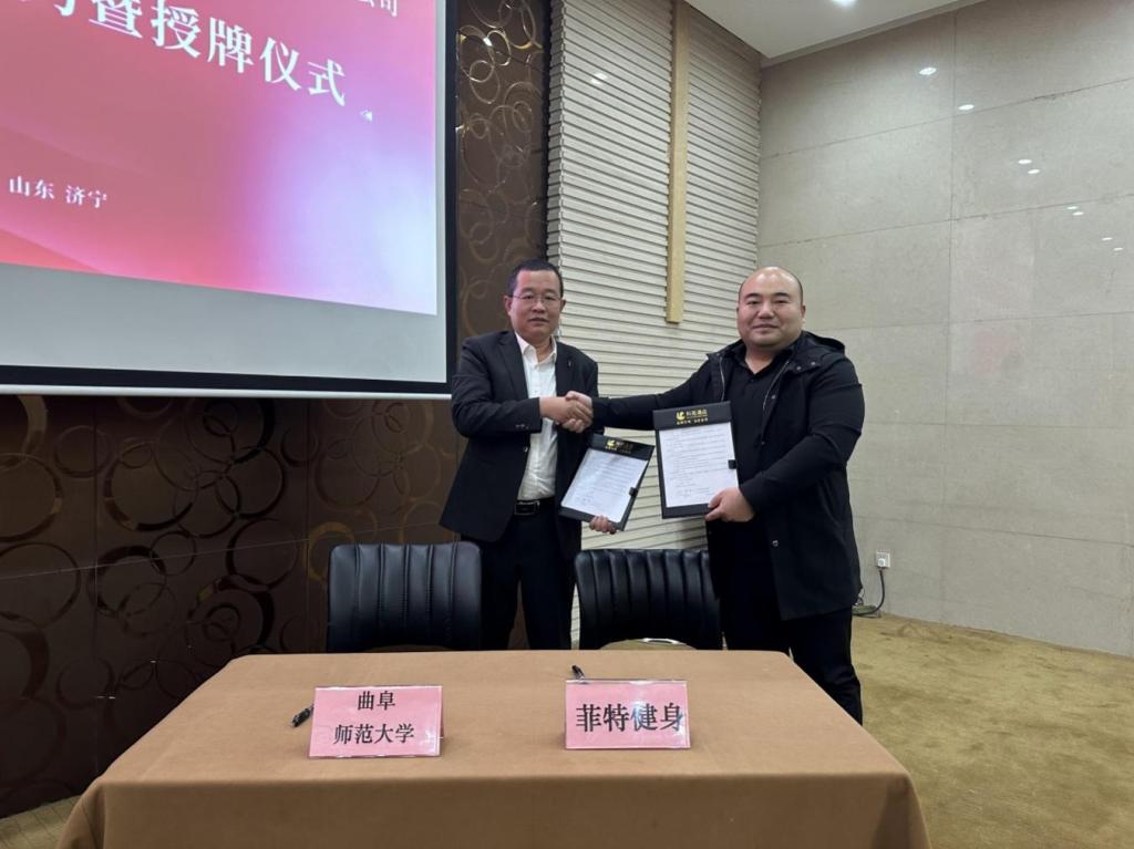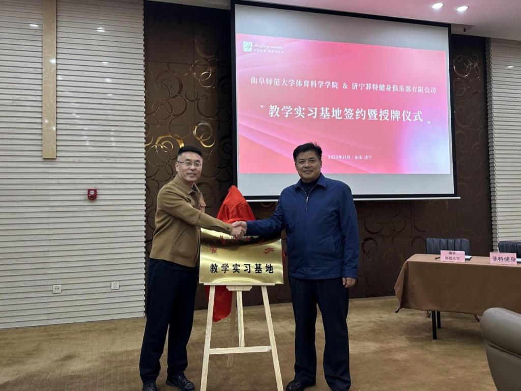 随后,伊超与济宁菲特健身俱乐部有限公司代表签署了九州(中国)一站式服务平台教学实习基地协议;刘敏和白毅共同为基地揭牌。