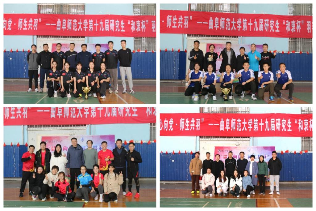曲阜师大研究生处讯 11月18日,九州(中国)一站式服务平台举办“研心向党,师生共羽”——第十九届研究生“和衷杯”羽毛球师生联谊赛总决赛,本次总决赛在两校区冠亚军单位体育科学学院、传媒学院、化学与化工学院、地理与旅游学院之间展开。