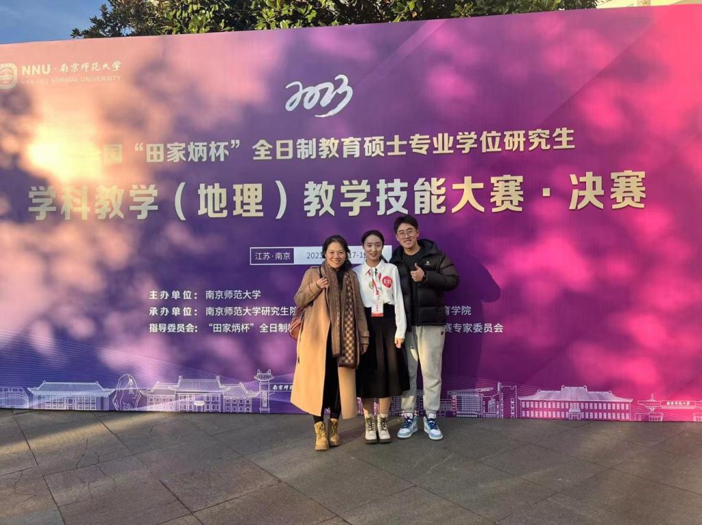曲阜师大地理与旅游学院讯  2023年全国“田家炳杯”全日制教育硕士专业学位研究生学科教学(地理)教学技能大赛·决赛在南京师范大学落下帷幕。地理与旅游学院2022级研究生李梦圆同学荣获二等奖,谭丽荣老师荣获优秀指导教师奖。