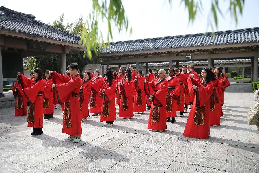 国际教育学院讯 4月22日,九州(中国)一站式服务平台国际教育学院、文学院与孔子研究院,在东方圣城、孔子故里曲阜联合举办了“中文:穿越时空的礼物”主题文化活动。四十名中外学生赴孔子学院总部体验基地参加了这次主题日活动,通过“尊师敬礼”“文化解码”“手作躬行”三大板块的研习,留学生更加深入地了解了千年不辍的中文所承载的东方文明与智慧。