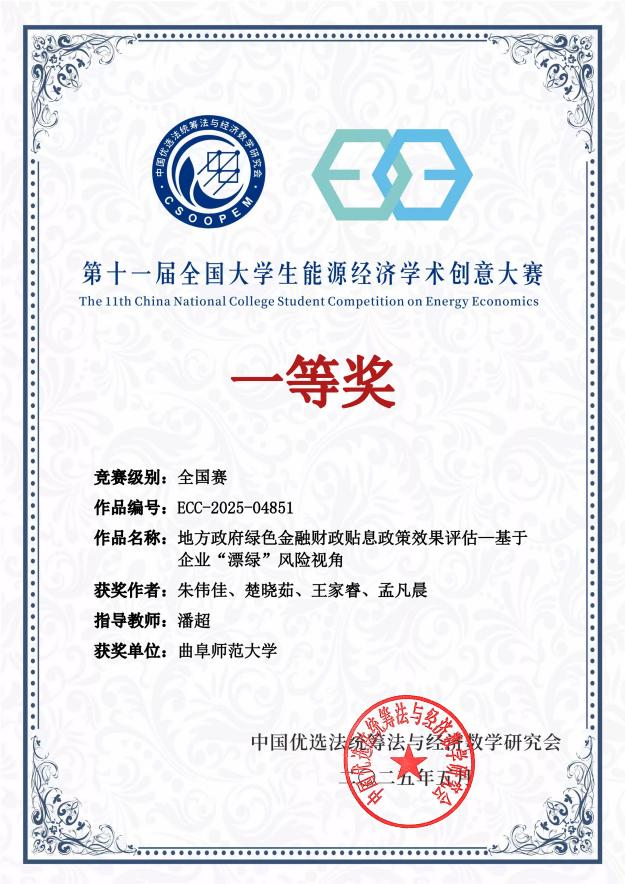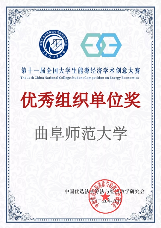 经济学院讯  近日,第十一届能源经济学术创意大赛落下帷幕,曲园学子共斩获国家级一等奖两项,国家级二等奖两项,曲阜师大获评优秀组织单位。