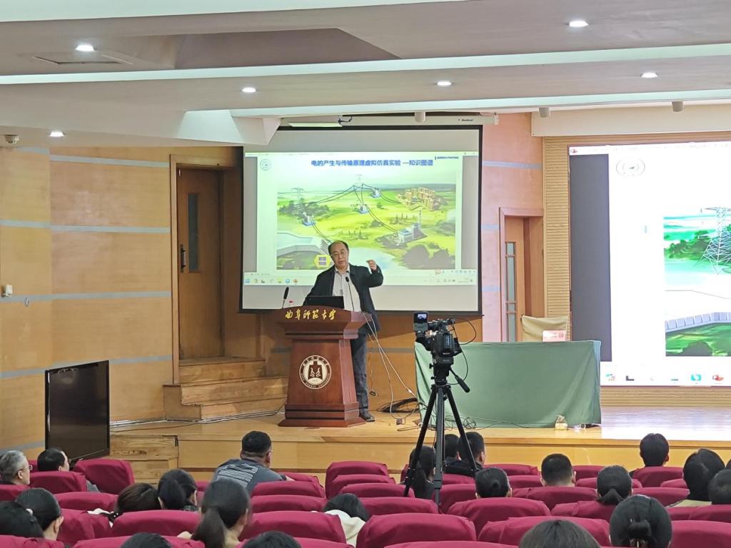 张汉壮教授从国家层面立德树人的政策发展历程阐释了立德树人内化于心的重要意义。张汉壮以“立德树人”为宗旨,讲述了如何以课程建设为载体,践行好育人使命;以《物理学导论》课程为例,展示了教学过程、教学方法和课程教材的多维度有机融合,构建一体化物理学类课程育人模式,实现知识传授、能力培养、价值塑造的育人目标。他还分享了“现场教学”“AR演示”“魔术演示”等相关视频,展示了生动有趣的课堂教学氛围。张汉壮强调,课程内涵建设要与信息化教学手段相结合,注重能力培养与三观引领的多维度过程,以知识传授为载体,引领品行素养与科学能力培养,才能在传授知识的同时更好地发挥对学生能力培养和价值引领的作用。