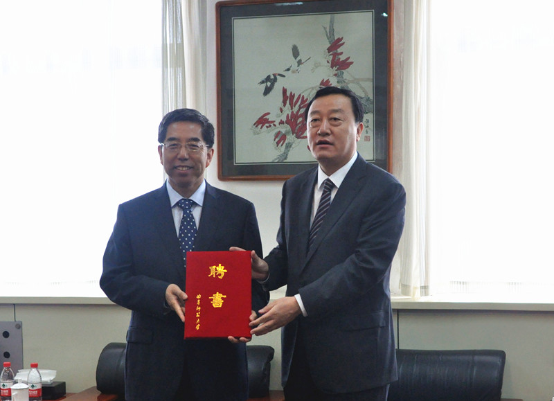 山东省副省长张务锋为中央委员、国家行政学院常务副院长马建堂,颁发中国教育大数据研究院荣誉院长聘书