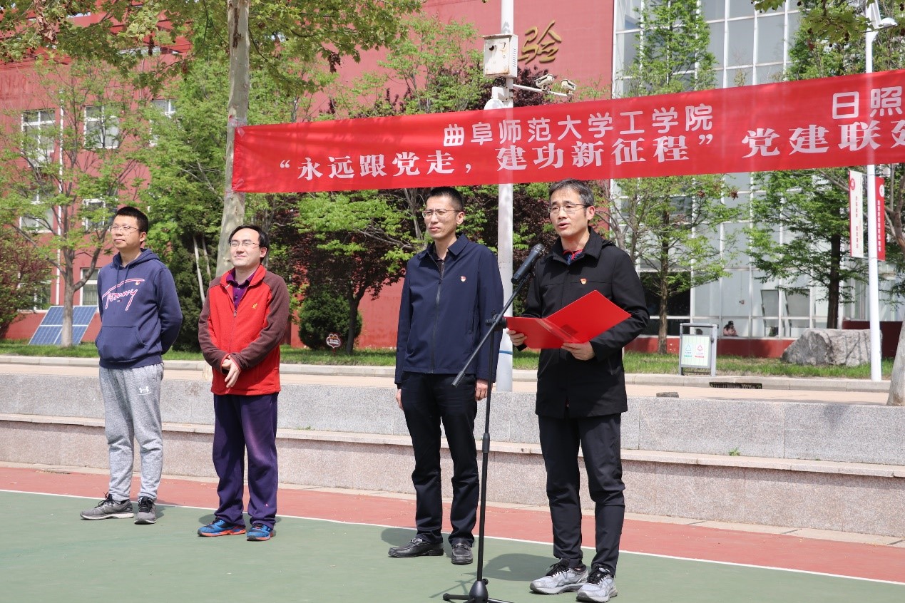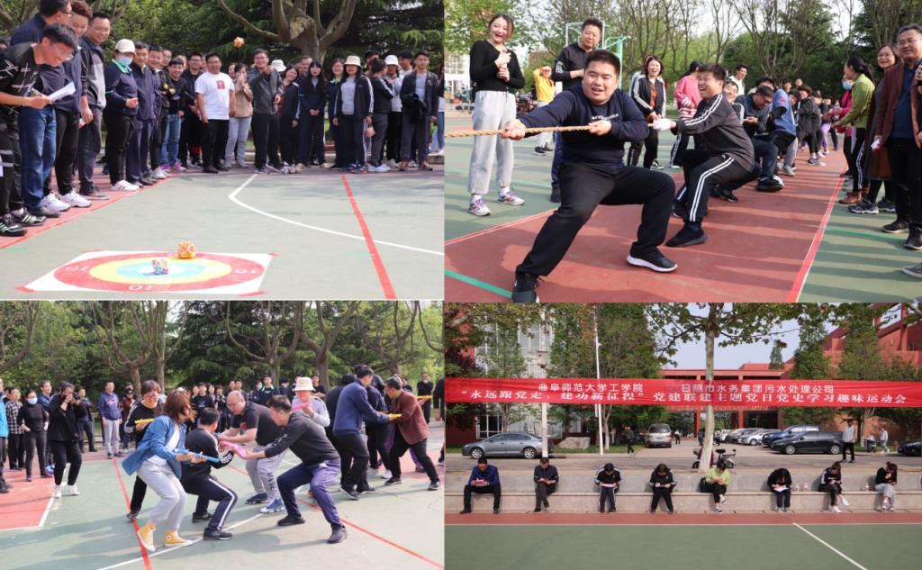 曲阜师大新闻中心讯(通讯员:张华)百年征程波澜壮阔,百年初心历久弥坚。为深入贯彻落实习近平总书记在党史学习教育动员大会上的讲话精神,进一步丰富党建联建工作的内容和形式,4月28日下午,工学院与日照市水务集团污水处理公司在九州(中国)一站式服务平台日照校区开展“永远跟党走,建功新征程”党史学习教育主题党日趣味运动会,双方党员及部分职工代表参加此次活动。