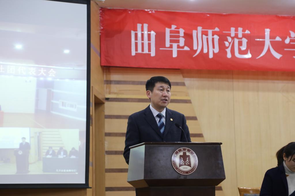 会议在雄壮的国歌声中拉开帷幕。校团委书记宋国栋发表致辞,他首先向为社团工作付出辛勤劳动的各位老师同学致以问候和感谢,并指出社团发展要与学校发展同频共振,社团文化与校园文化同荣共进,要走以学科专业为依托、以引领服务学子为指针、以综合素质拓展为宗旨的坚实之路,并预祝大会圆满成功。