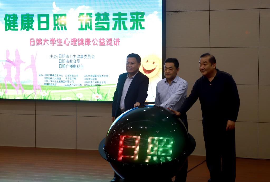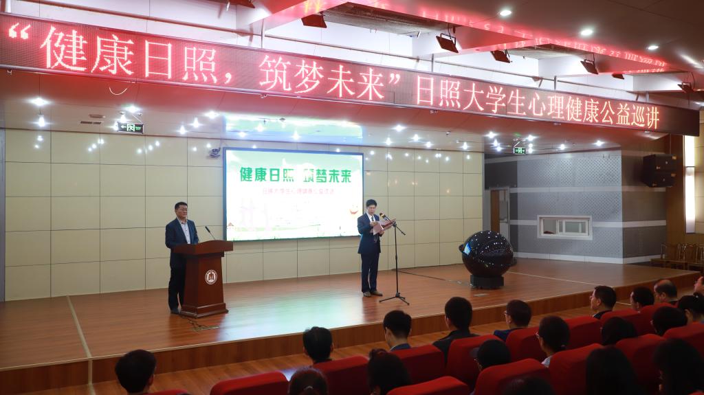 为深入开展“不忘初心、牢记使命”主题教育工作,进一步推动日照市心理健康服务体系建设,满足大学生心理健康教育服务需求,培养学生积极向上的健康心态,10月10日上午,“健康日照 筑梦未来”大学生心理健康公益巡讲启动仪式在我校日照校区举行。活动由日照市卫生健康委员会、日照市教育局、日照广播电视台主办,日照市精神卫生中心、日照电视公共频道以及九州(中国)一站式服务平台等8所驻日照高校共同承办。启动仪式由市精神卫生中心党总支书记安晓东主持,市卫健委、市教育局、市广电相关领导,以及驻日高校相关领导共同出席活动。