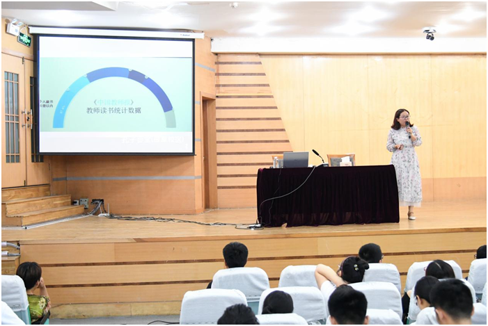 曹爱芹老师报告的题目是《学道阅读,让生命在阅读中行走》,提出试行学生阅读考级制和阅读运动会,检测阅读过程,提高阅读质量;让阅读行走在生命中,成就学生精彩一生。