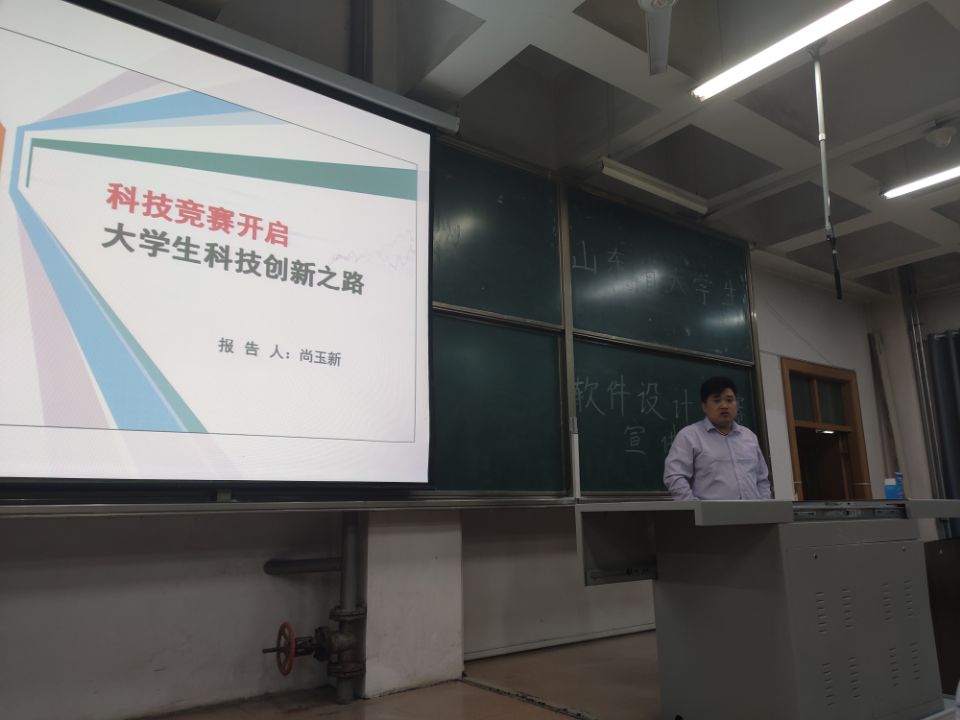 为拓宽学生创新思维,提升实践能力,5月13日,第十届山东省大学生科技节系列比赛之第十七届山东省大学生软件设计大赛的巡回报告会在日照校区举行,济南计算机学会常务副秘书长尚玉新做了题为《科技竞赛引领大学生科技创新创业之路》的报告,信息科学与工程学院部分学生聆听了报告。宣讲报告由信息科学与工程学院团委书记毕文波主持。