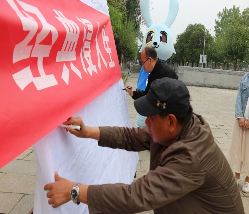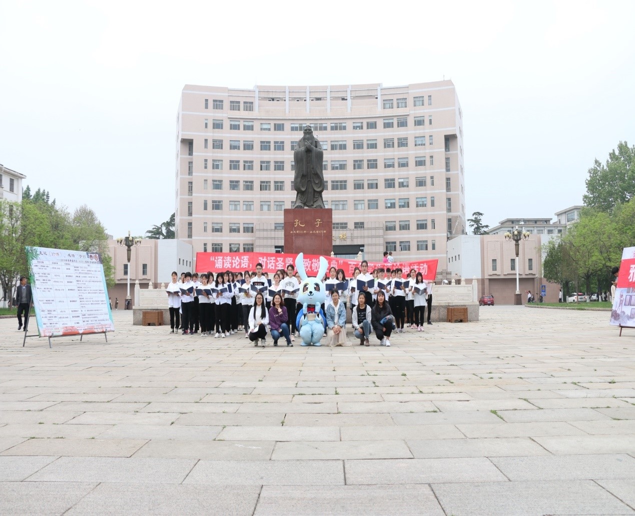 活动中,100名同学集体诵读《论语》。一句句经典的论语在曲园上空回荡,在四月的微风中,在广阔的孔子广场上,经典的书香浸润整个曲园,孔夫子的思想与智慧之光也穿越2000多年在曲园熠熠生辉。诵读结束后,现场师生井然有序地走向签名板,在签名板上签上自己的名字。