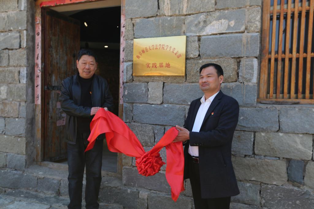 最后,曹明亮与宋建为实践基地正式揭牌。揭牌仪式后,法学院学生党支部全体成员在蒙山党性教育基地重温入党誓词。