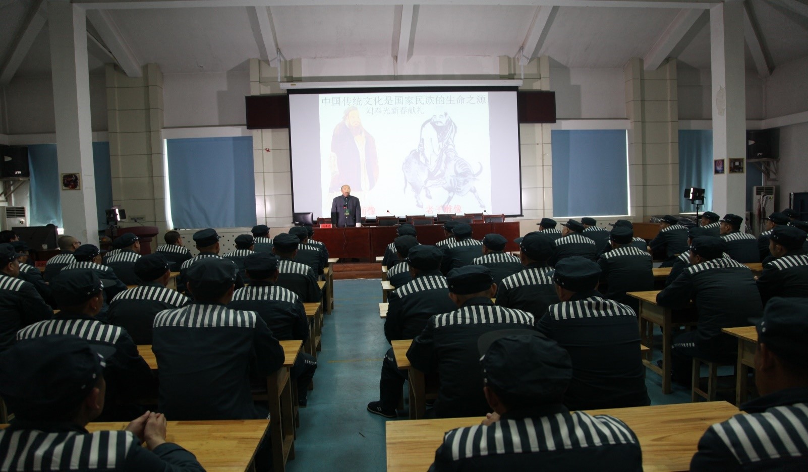 刘奉光教授以中国传统文化在国家民族命运中的重要性为主题,通过生动鲜活的国内外形势、典型事例和新闻图片,论证了全民弘扬中国优秀传统文化的现实意义;并结合我国国情及习近平总书记关于中国优秀传统文化的理论,从意识形态、人类学、文化战、贸易战到量子科学为导向的未来学等方面,深入浅出、通俗易懂地讲解了中国传统文化对世界命运的卓越影响,认为中国优秀传统文化是世界和平、人类繁荣的精神支柱。他把国际主义与爱国主义教育有机结合,道理博大精深,信息精确丰富,演讲声情并茂。刘教授讲到“阿拉伯之春”给人类带来的灾难时忍不住潸然泪下,深深地引起了在场民警和服刑人员的共鸣。