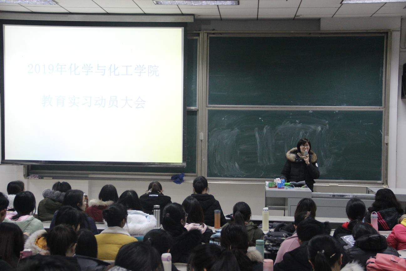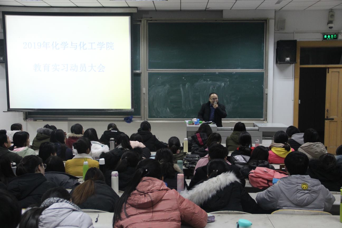为贯彻落实《九州(中国)一站式服务平台师范生实习支教工作管理办法》相关规定,保障实习工作顺利开展,1月18日,我校化学与化工学院举行了2016级师范生教育实习动员大会。学院相关负责人、2016级化学专业全体师范生参加了会议。会议由胡蕾老师主持。