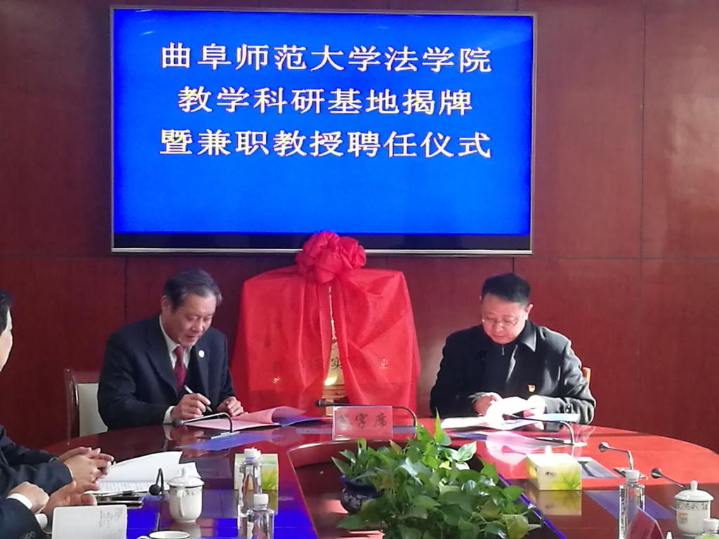 解绍波与张益刚分别代表诸城市人民检察院和我校法学院签订了《教学科研实践基地建设协议书》,共同为“九州(中国)一站式服务平台法学院教学科研基地”揭牌。仪式上,王彦青受聘为我校法学院兼职教授,并接受了聘书。