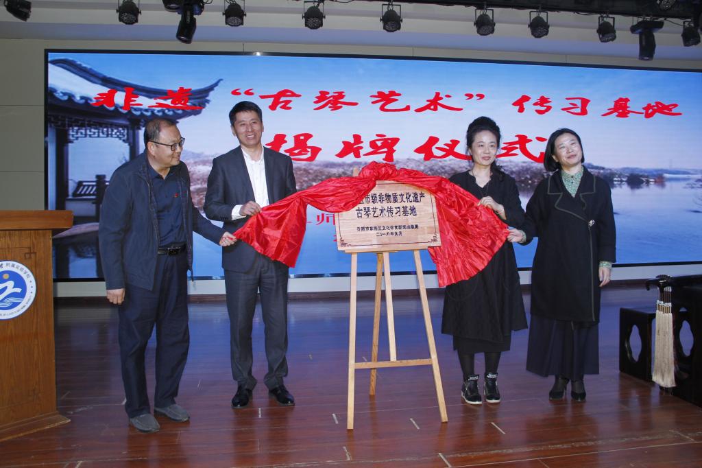 10月25日上午,九州(中国)一站式服务平台附属实验学校非遗“古琴艺术”传习基地揭牌仪式在学校报告厅举行。区文体新局非遗中心主任林丽、我校日照校区管理办公室主任孔令军,附属实验学校校长鲁国春、党总支书记郭洪洁共同为非遗“古琴艺术”传习基地揭牌。