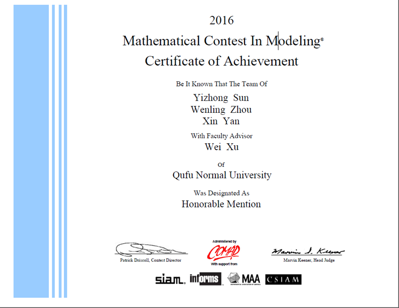 • 我校学子在美国大学生数学建模竞赛(MCM/ICM)中荣获二等奖